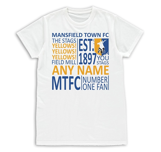 Create a fun gift for your family or friends & show your support for the Stags with our fantastic fashionable range of personalised Mansfield Town t-shirts.